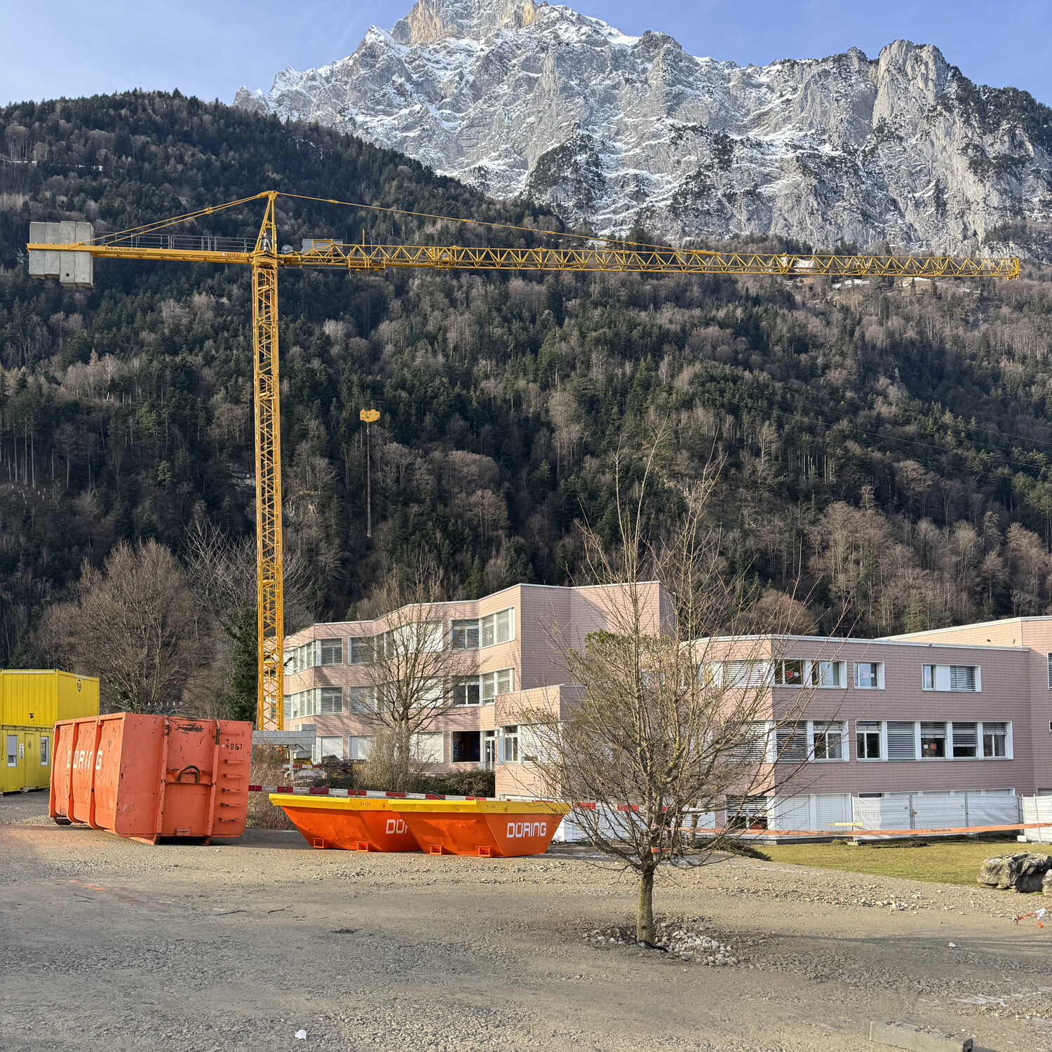Nach erfolgter Einrichtung der Baustelleninstallationen, können nun die Bauarbeiten an der Kreisschule Seedorf beginnen.
