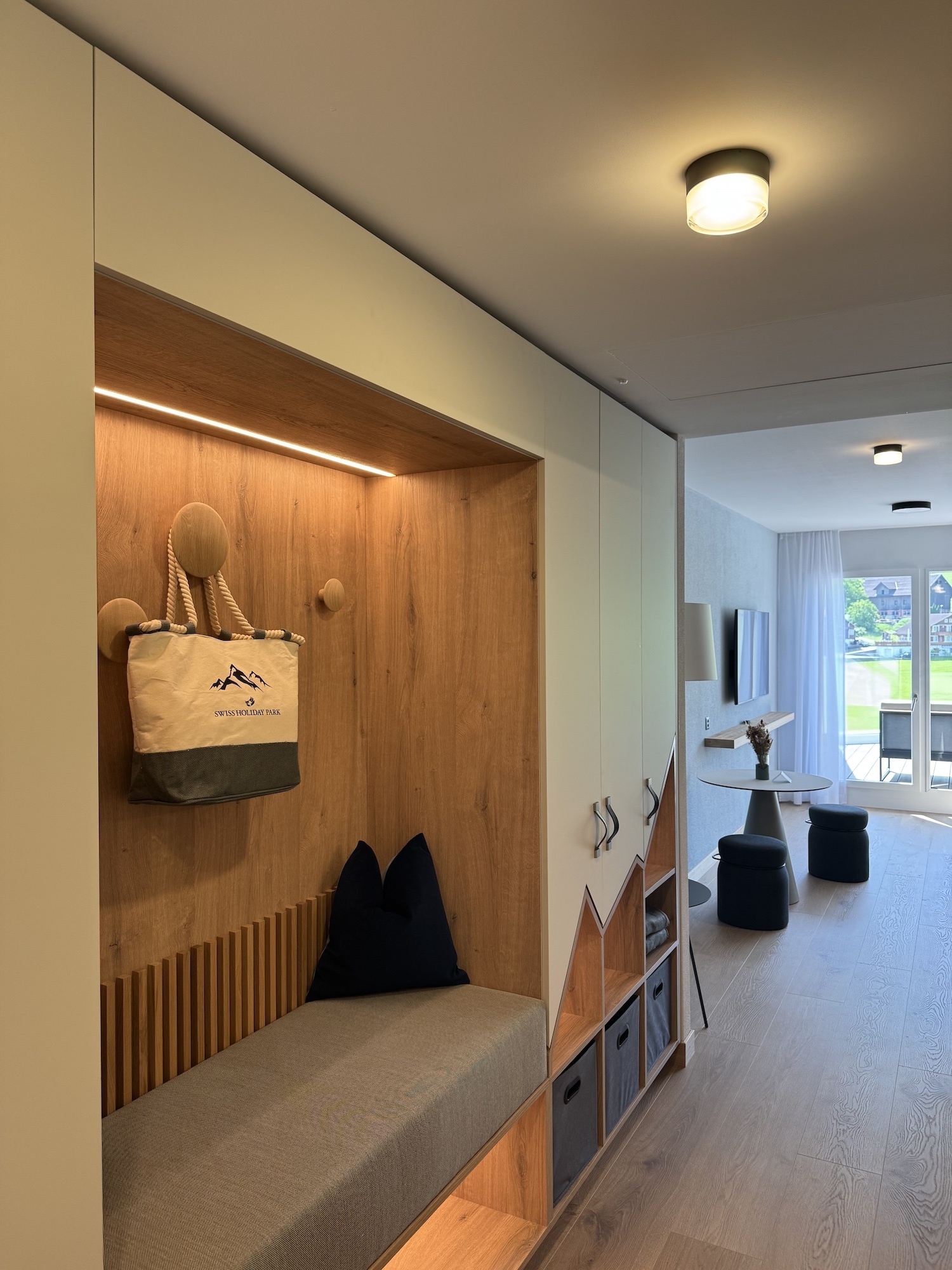 Im Rahmen der strategischen Weiterentwicklung des Resorts wurde das 4. und 5. Obergeschoss des Hoteltrakts Axenfels umfassend umgebaut, technisch modernisiert und in seiner Nutzung neu interpretiert. Ziel des Projekts war es, die bestehenden Seminar- und Konferenzräume in hochwertige Familienunterkünfte mit hohem Erlebniswert zu transformieren – unter Beibehaltung des laufenden Hotelbetriebs.