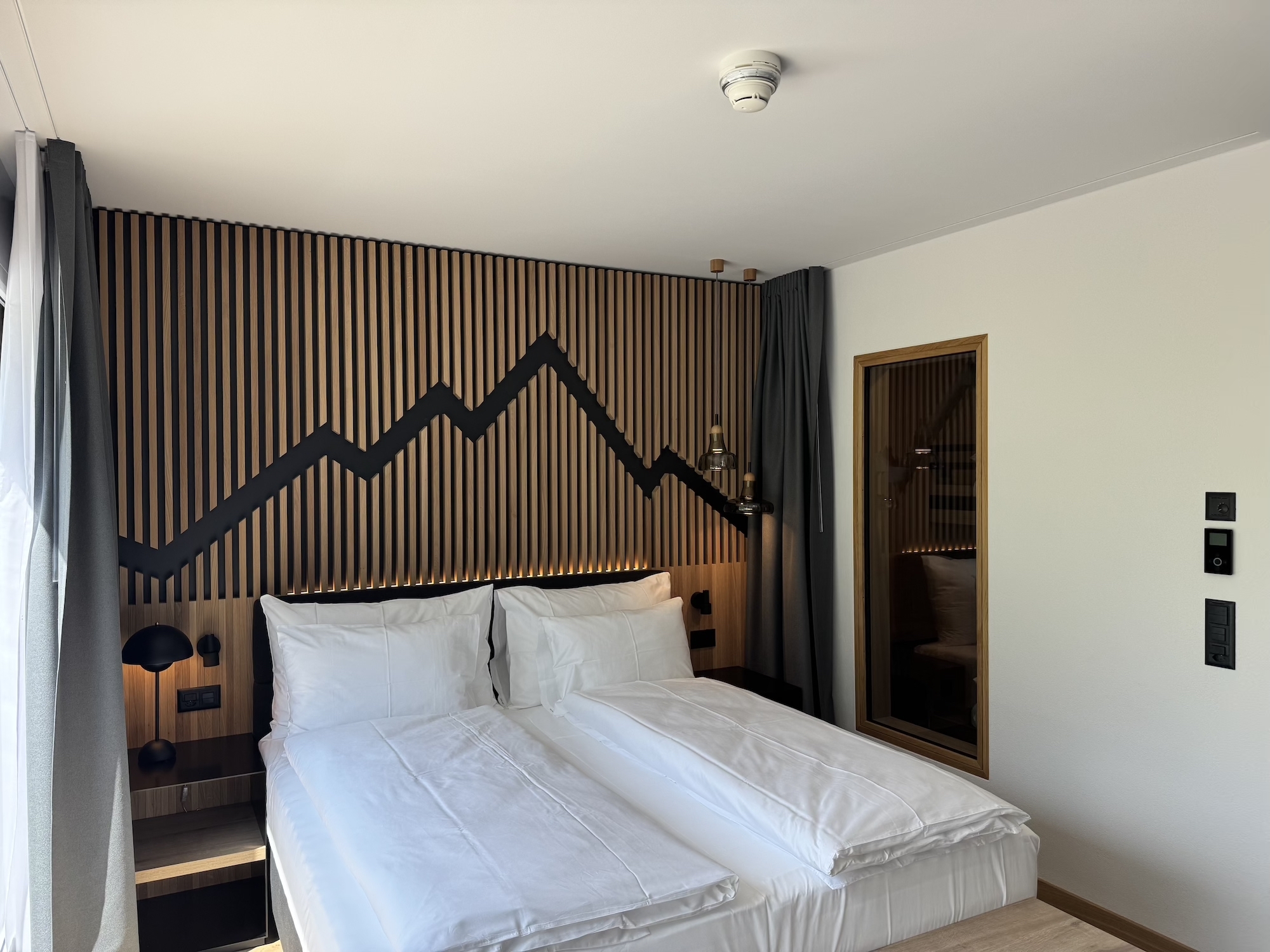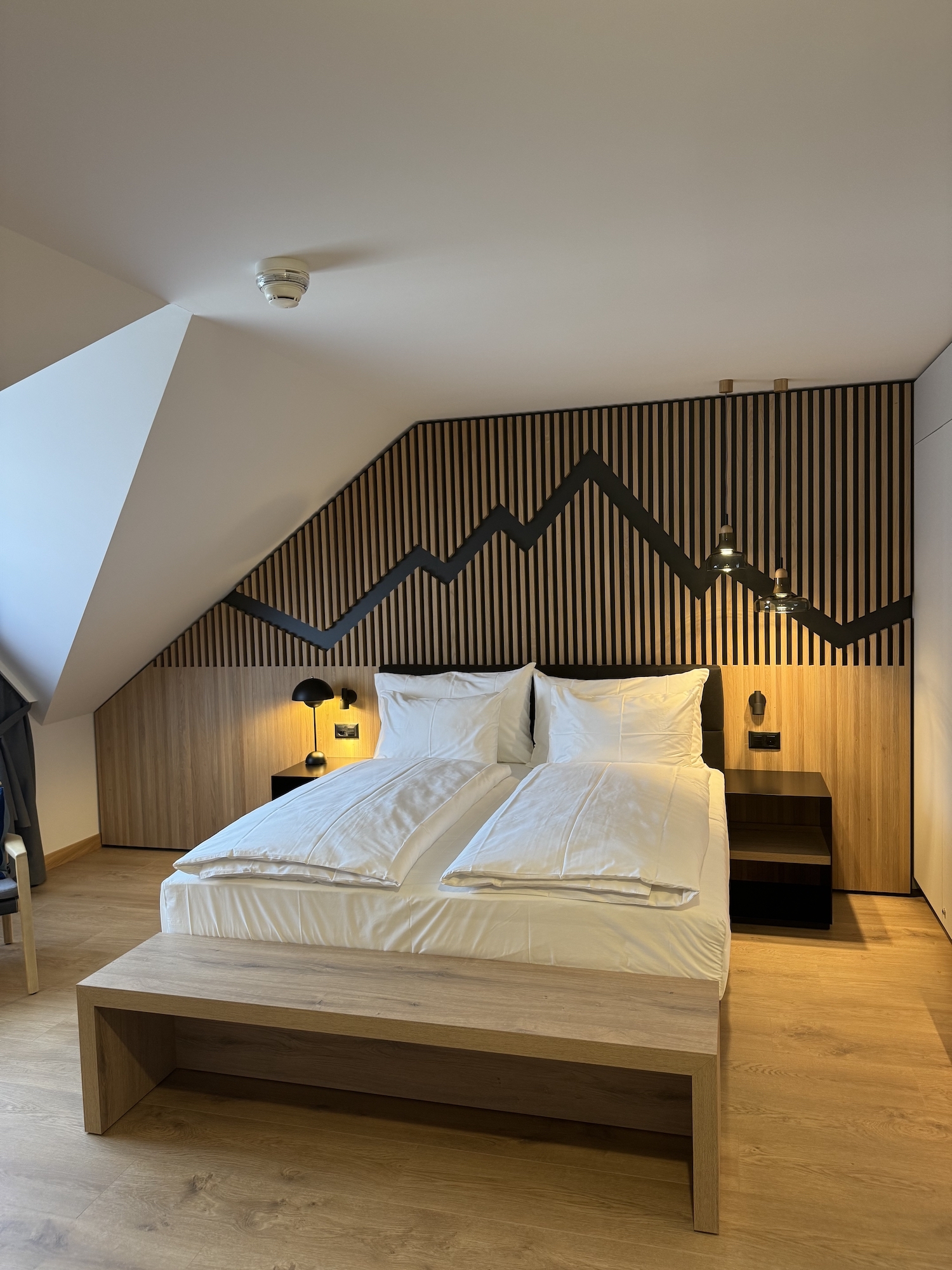Im Zentrum des Umbaus stand die Umnutzung der grossflächigen, ehemals als Seminarzonen genutzten Bereiche im 4. Obergeschoss. Entstanden sind lichtdurchflutete, grosszügig gestaltete Familienzimmer mit atemberaubendem Blick auf die umliegende Bergwelt. Den architektonischen Höhepunkt bildet eine grosszügige Maisonette-Familiensuite im Bereich des ehemaligen Foyers: Durch die gezielte Erhaltung und Ergänzung der bestehenden Galerie konnten offene, einladende Raumstrukturen mit separaten Rückzugsbereichen für Eltern und Kinder geschaffen werden.